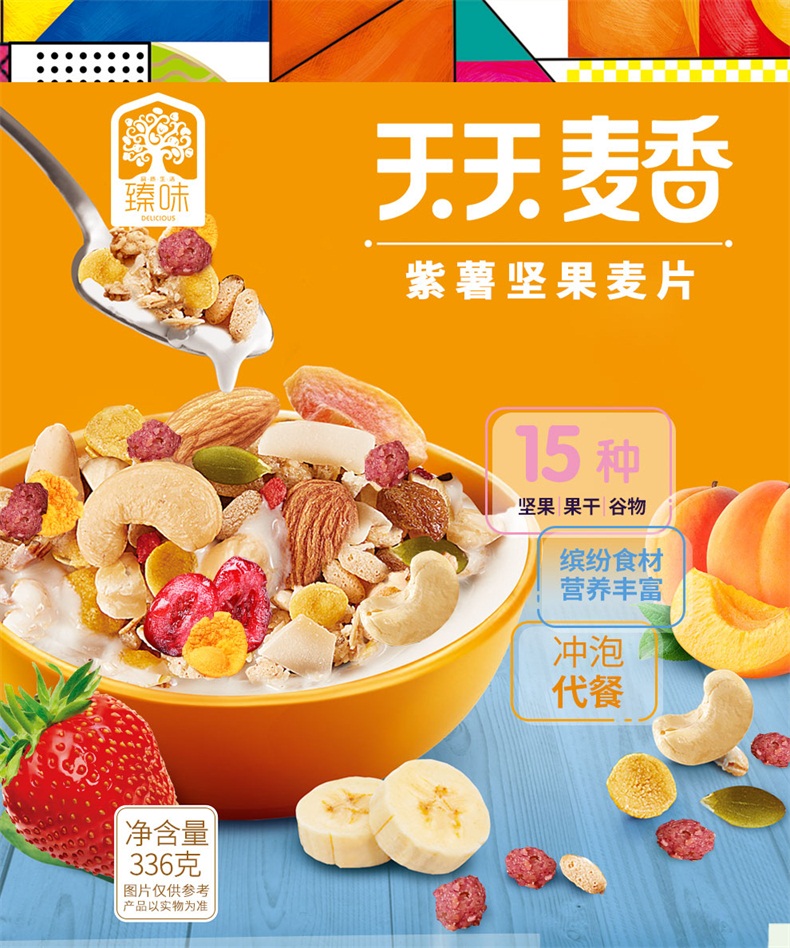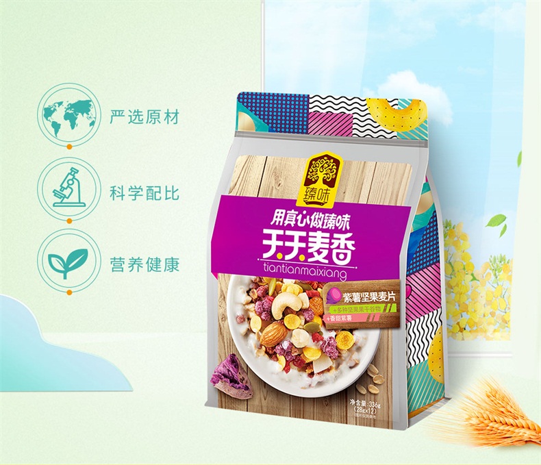 臻味紫薯坚果燕麦片儿童孕妇即食冲饮谷物营养早餐水果代餐奇亚籽可干吃袋装336g
